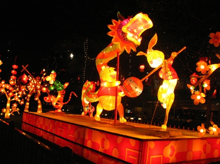 彩燈節(jié)設(shè)計(jì)是由新加坡科技大學(xué)6名學(xué)生設(shè)計(jì),所有的彩燈制作是由48名來(lái)自中國(guó)四川自貢彩燈公司的工匠師傅手工制作。